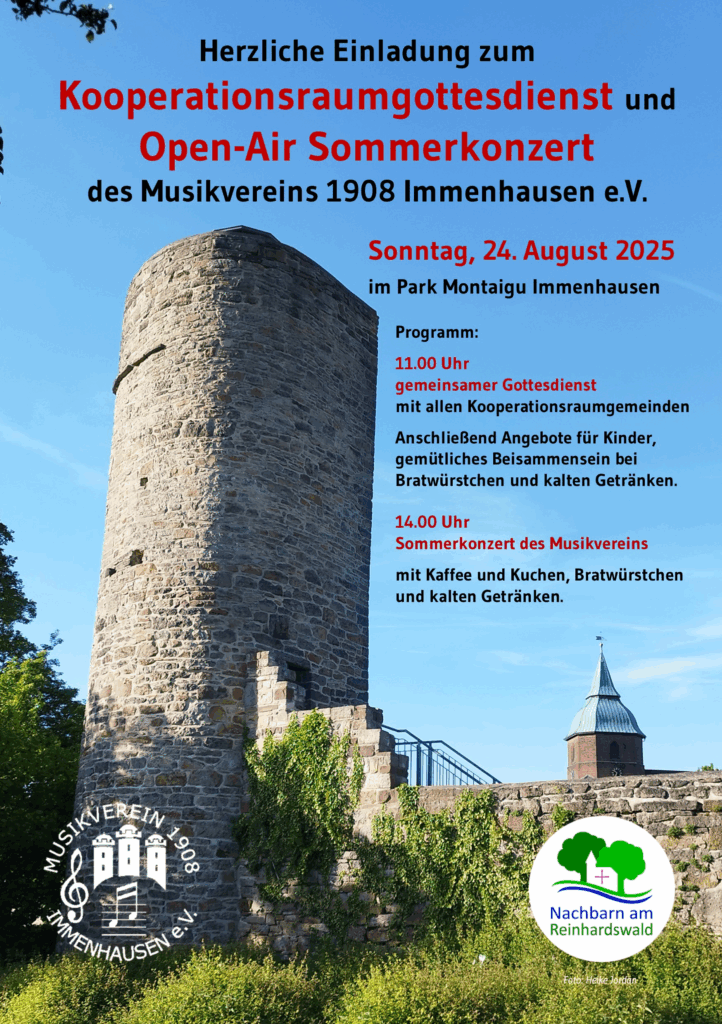 Wir feiern auch in diesem Jahr wieder unseren großen Kooperationsraumgottesdienst. Nachdem im letzten Jahr in Schachten fast 300 Menschen zusammen kamen, sind wir in diesem Jahr in Immenhausen. Kommt vorbei!